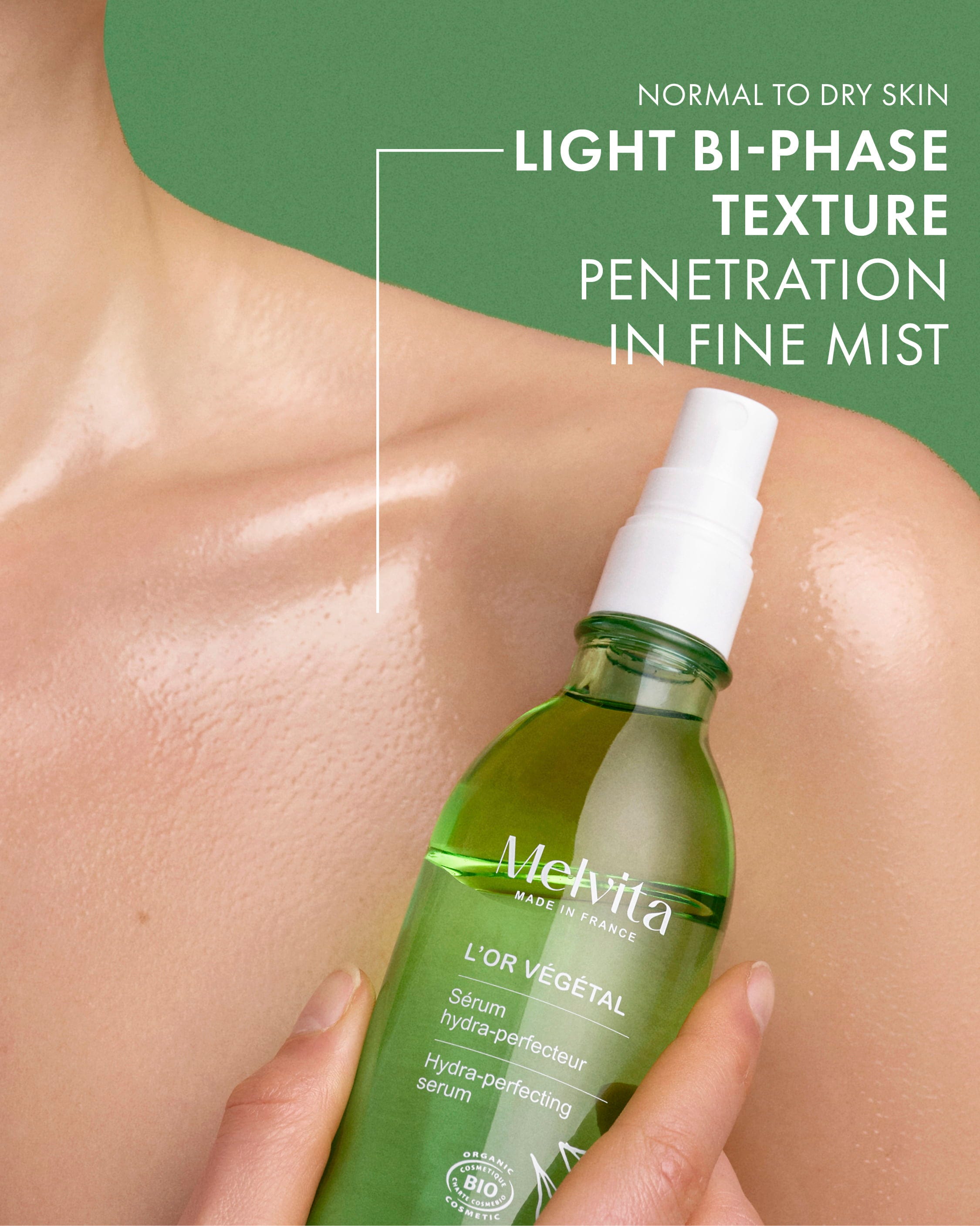 Acest ser pentru corp, extrem de ușor și în două faze, oferă o îngrijire suplimentară intensiv hidratantă, asigurând netezime și catifelare. Textura sa se absoarbe rapid, fără a lăsa urme lipicioase, răsfățând simțurile cu parfumul său revigorant și lemnos.