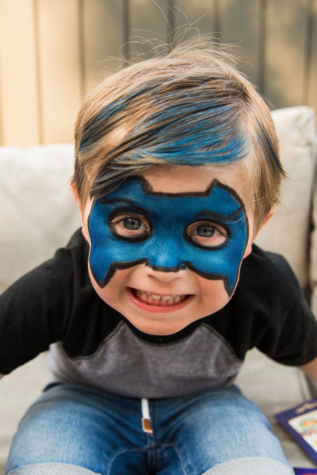 Setul cu o pensulă și culorile prietenoase cu pielea, Negru, Albastru și Argintiu, transformă instantaneu orice copil într-un cavaler sau un supererou. În funcție de dorință. Machiajul hipoalergenic este, de asemenea, ușor de spălat.
