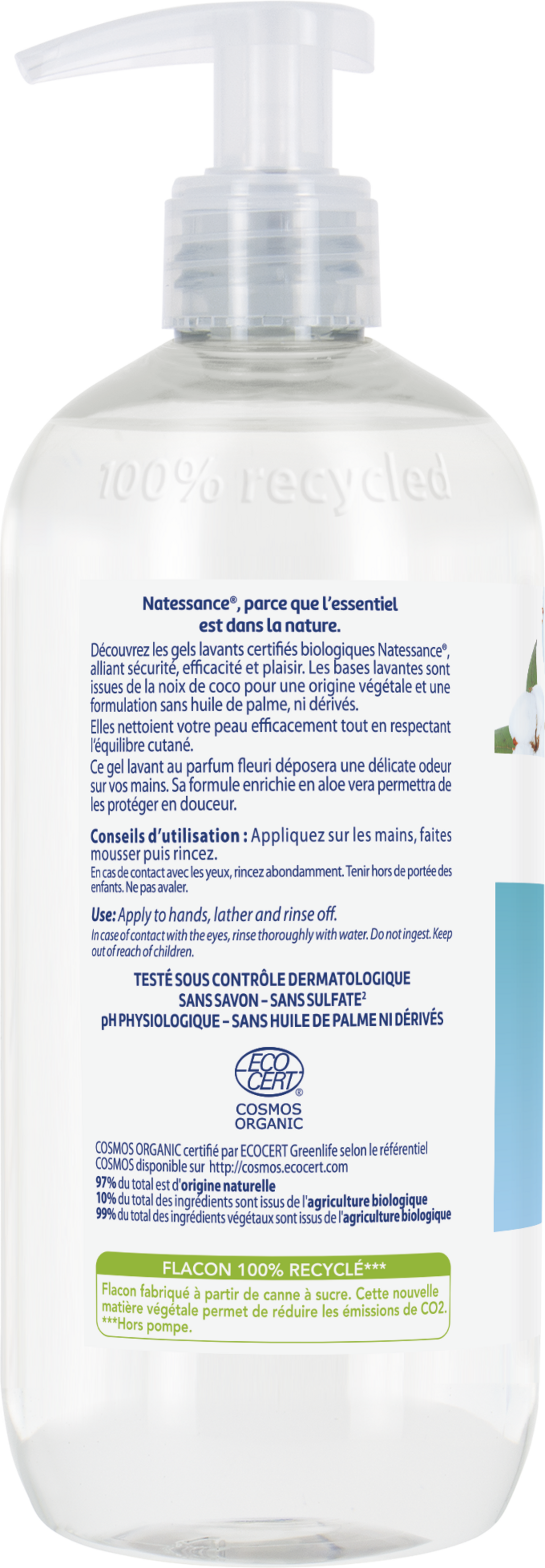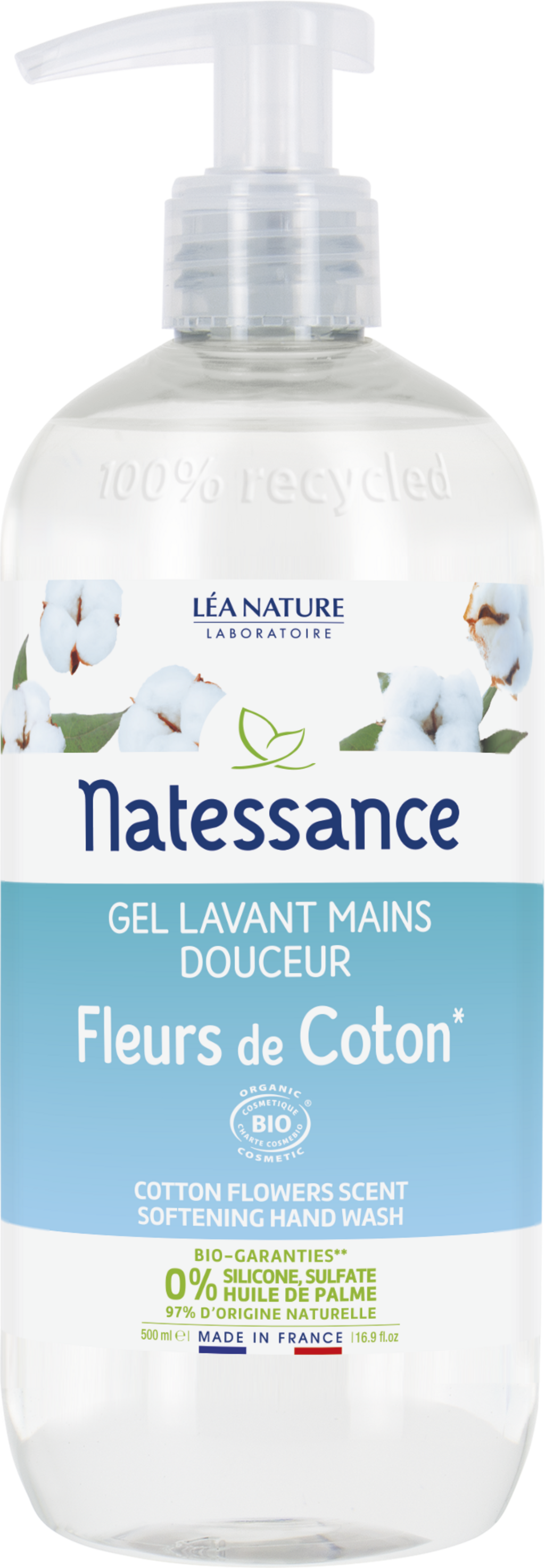 Natessance Gel de spălare a mâinilor cu floare de bumbac, 500 ml