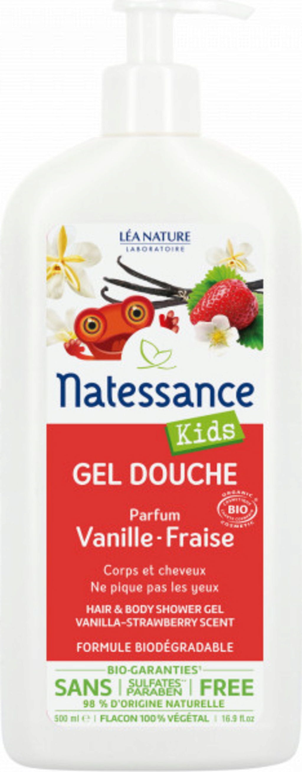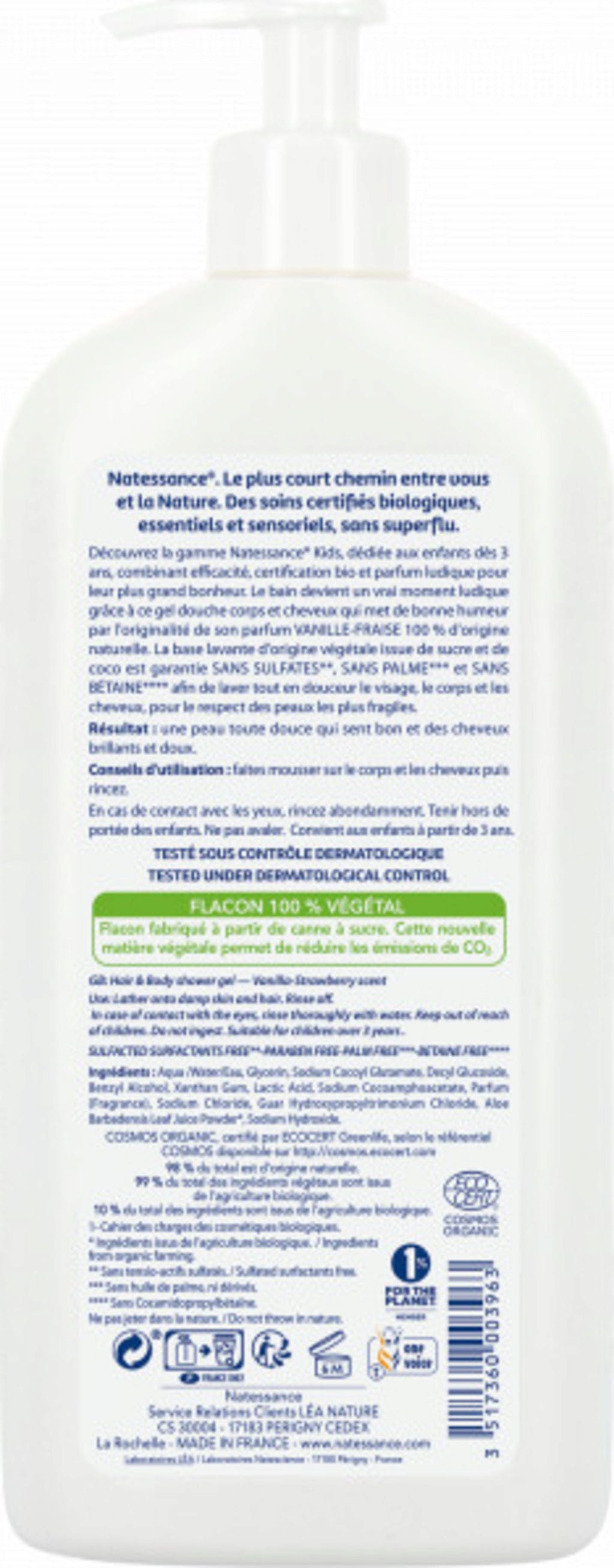 Natessance Șampon & Gel de Duș 2în1 pentru Copii Vanilie-Căpșuni, 500 ml