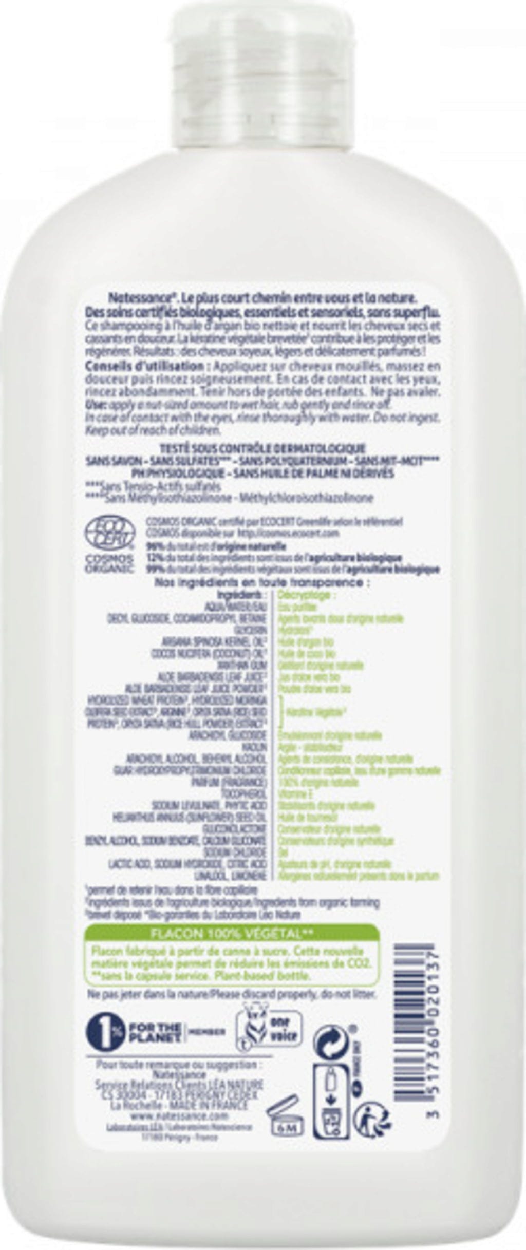 Natessance Șampon nutritiv cu Argan & Keratină, 500 ml