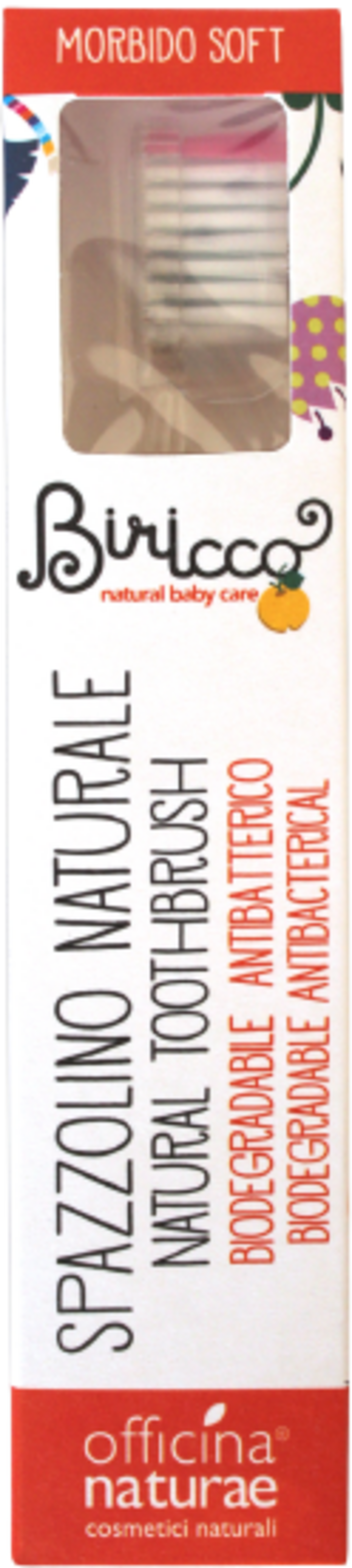 Această periuță de dinți inovatoare, cu peri impregnați cu argint, asigură o igienă orală sigură și perfectă pentru copiii de la un an. Particulele fine de argint conferă periuței proprietăți de autocurăţare, făcând-o deosebit de igienică. Periuța este produsă folosind materii prime sustenabile: mânerul este realizat din bio-plastic, obținut din pastă de lemn, iar perii exteriori sunt produși pe bază de ulei de ricin. Doar perii interiori sunt fabricați din nylon. Această periuță protejează smalțul și gingiile și curăță temeinic. Perii de la vârf aduc o notă veselă de culoare, astfel încât fiecare să-și recunoască periuța imediat.