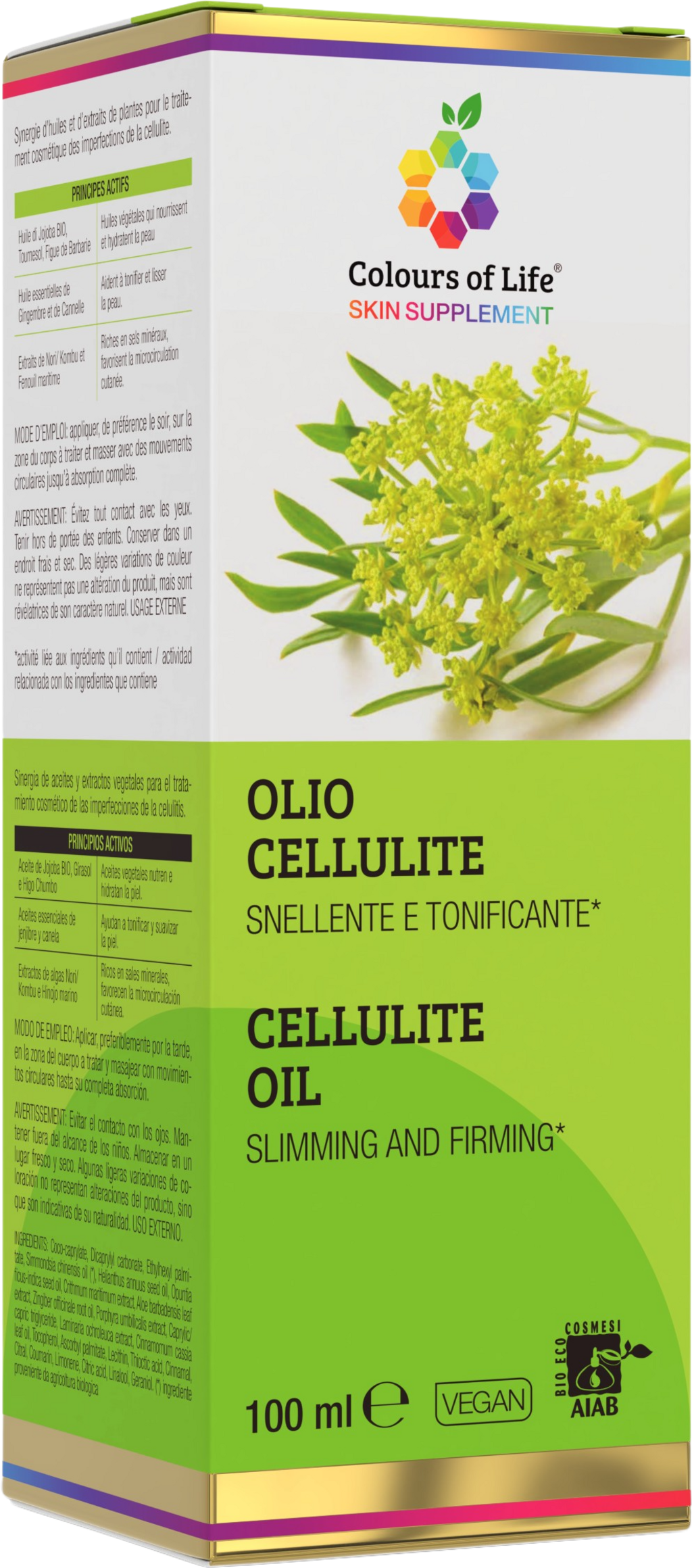 Formulat cu uleiuri vegetale, uleiuri esențiale și extracte din plante, acest ulei este destinat îngrijirii celulitei. Extractele de alge Kombu și Wakame în combinație cu fenicul marin și uleiuri esențiale de ghimbir și scorțișoară oferă proprietăți tonifiante. În plus, uleiurile de jojoba, floarea-soarelui și cactus opuntia au proprietăți hrănitoare și hidratează pielea, fără a lăsa senzația de lipicios.
