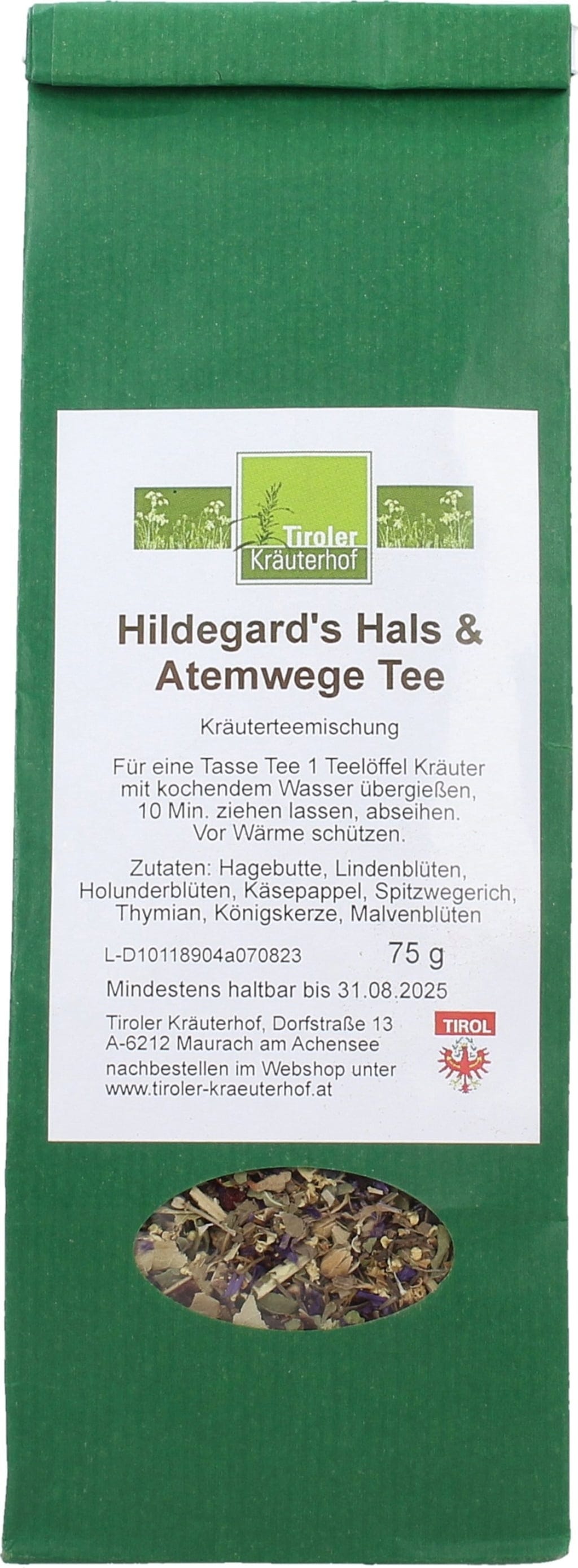 Tiroler Kräuterhof Hildgard's Ceai pentru Gât & Căi Respiratorii, 75 g