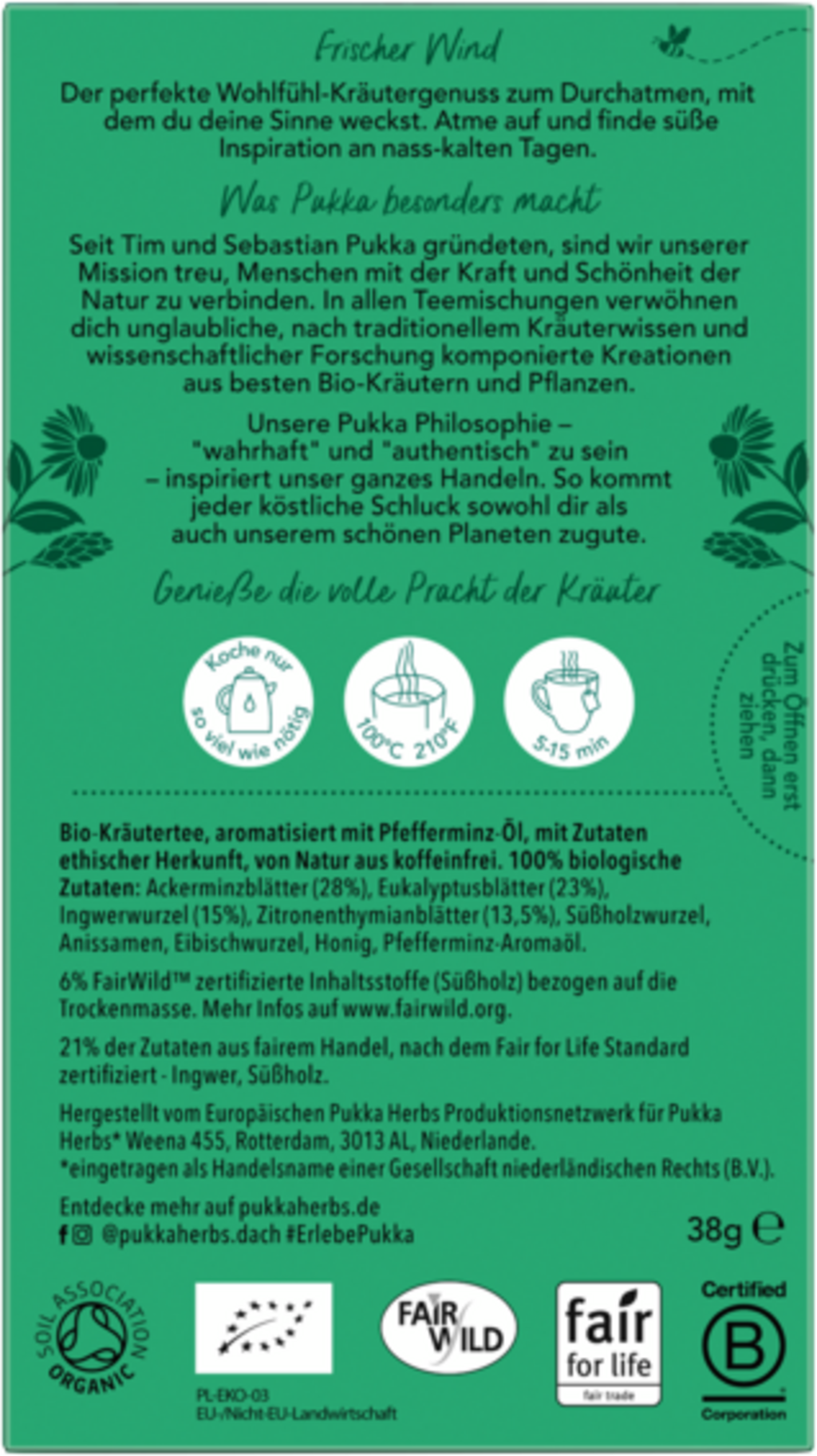 | Operator responsabil din domeniul alimentar: | Lipton Teas and Infusions Germany GmbH, Axel-Springer-Platz 3, c/o WeWork, 20355, Hamburg, Germania, kontakt@pukkaherbs.de |