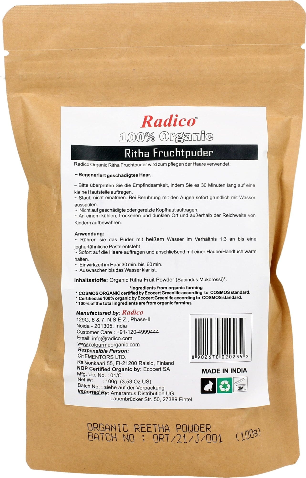 Radico Pudră Bio Reetha, 100 g