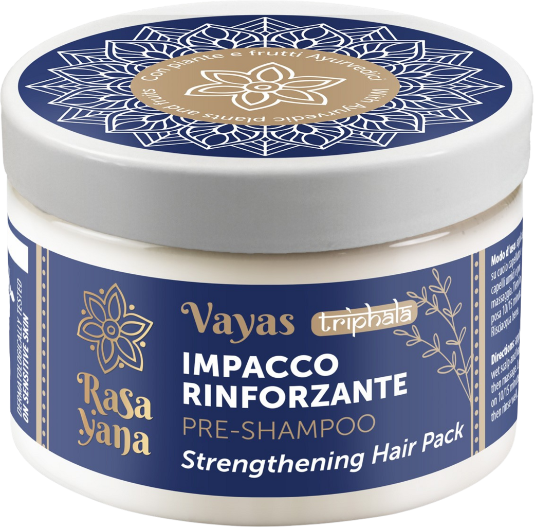 Această mască ayurvedică pentru păr a fost concepută ca un tratament pre-șampon și este ideală pentru părul fragil și predispus la cădere. Formula sa conține triphala, un amestec de plante ayurvedice, cum ar fi Methi, Brahmi și Amla, în combinație cu Centella. De asemenea, sunt incluse cofeina, Scutellaria baicalensis, uleiul de ricin și acidul hialuronic, oferind proprietăți tonifiante în sinergie. Numele Vayas provine din sanscrită și semnifică energie fizică și mentală.