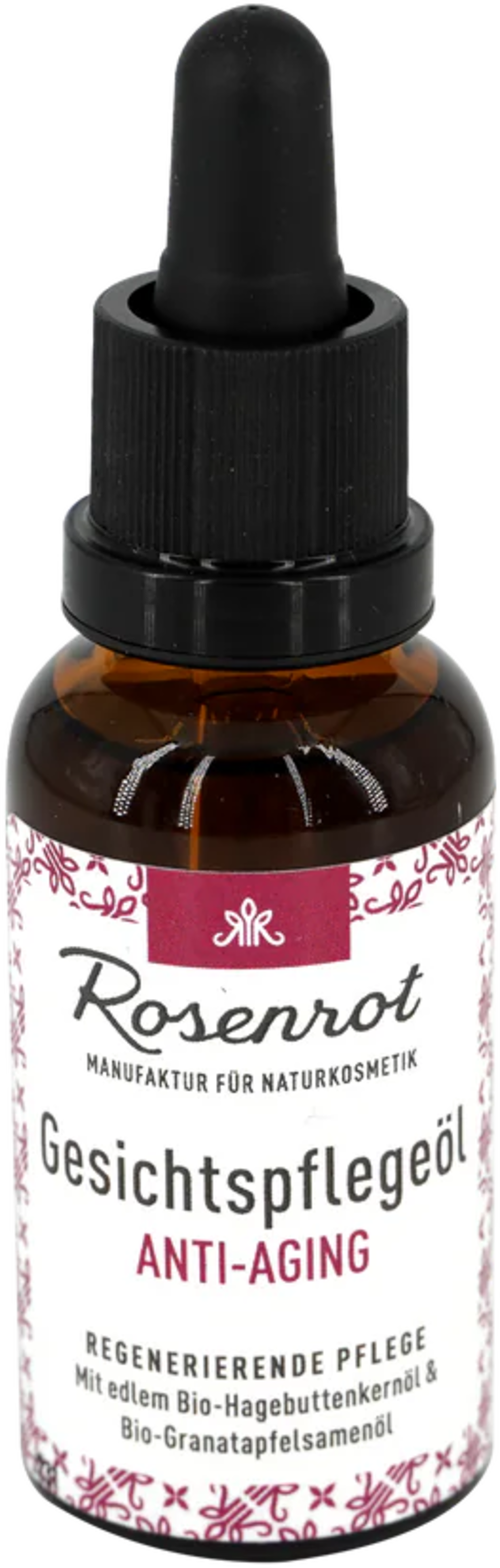 Baza acestui ulei de față constă în prețiosul ulei de măceșe și ulei din semințe de rodie, provenite din culturi biologice controlate, care satisfac perfect nevoile pielii mature. Bogate în antioxidanți și acizi grași valoroși, acestea combat semnele îmbătrânirii pielii și stimulează regenerarea celulară. Alte uleiuri vegetale reglează umiditatea pielii și îmbunătățesc elasticitatea acesteia. Mirosul fin și proaspăt este 100% natural și induce o stare de spirit pozitivă!