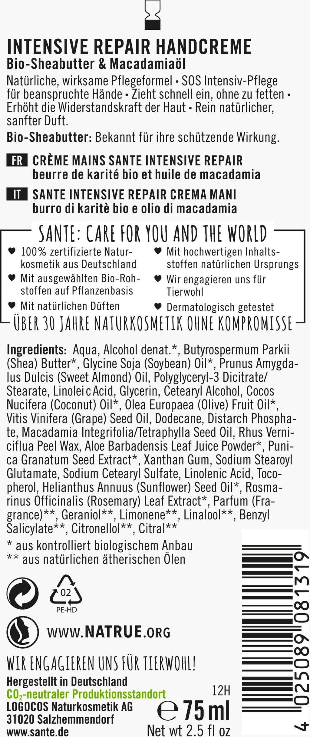 Santé – naturally. Intensive Repair Handcreme, 75 ml