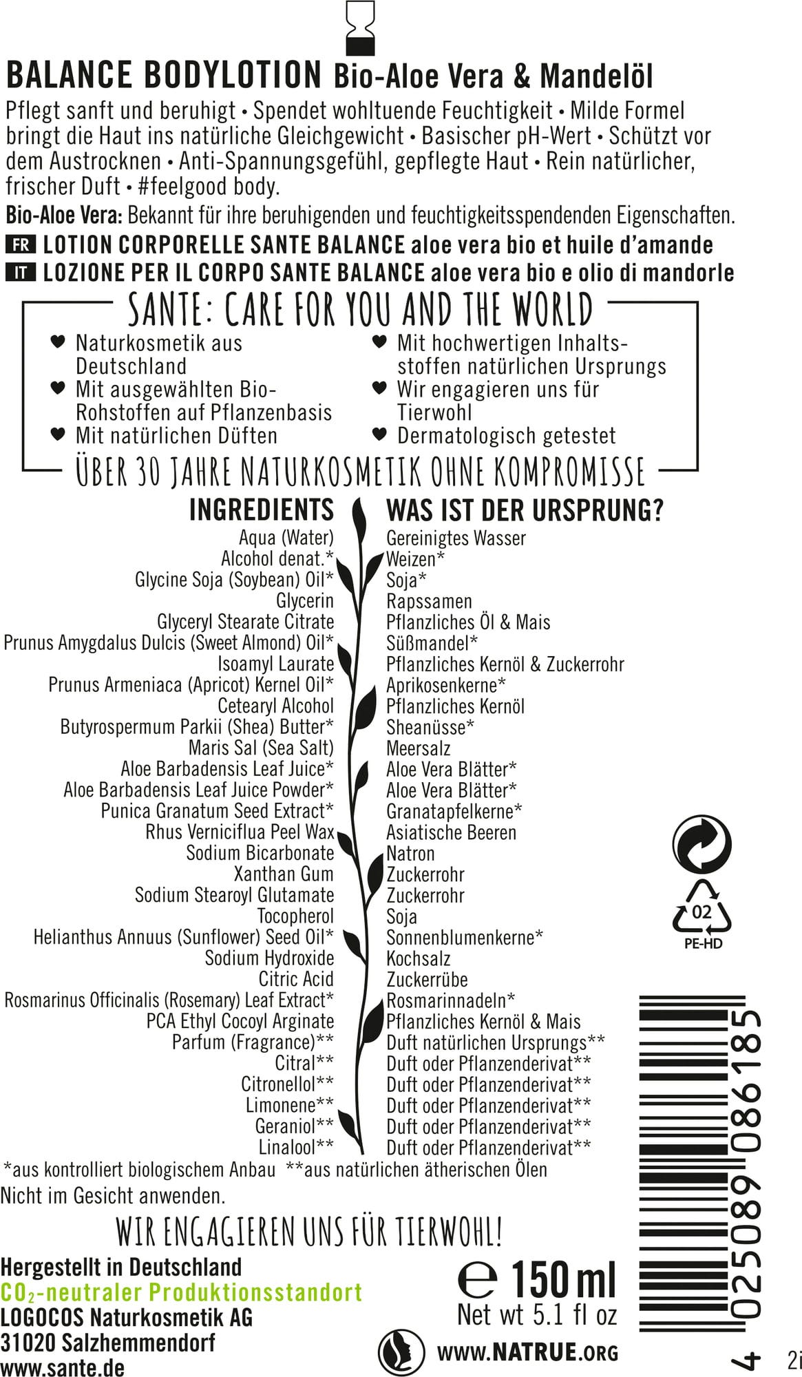 Santé – naturally. Loțiune de corp BALANCE, 150 ml 27,59 lei (183,93 lei / l)