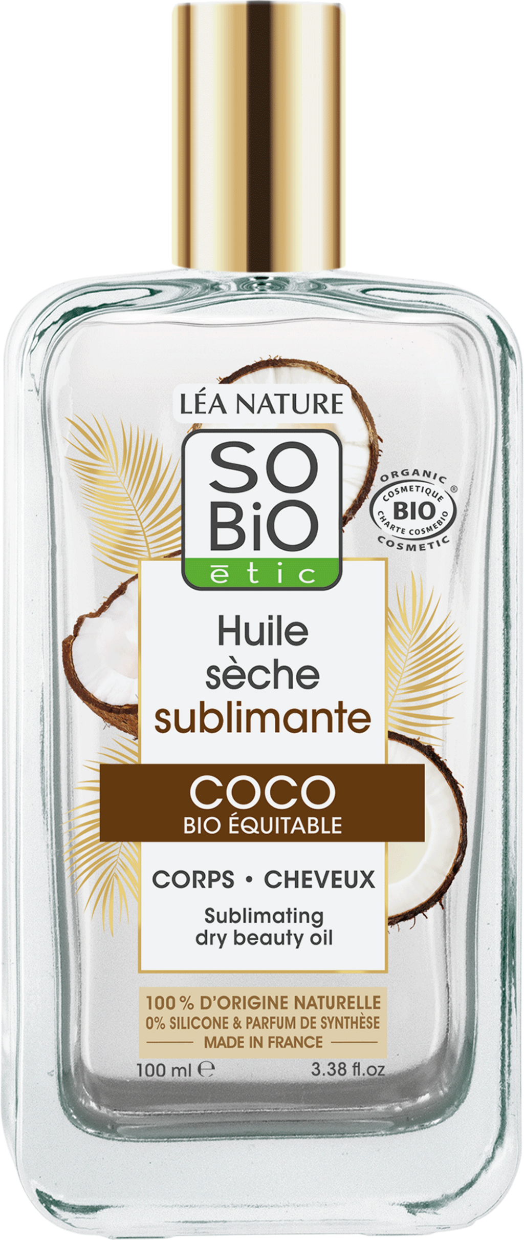 Acest ulei uscat cu cocos bio îngrijește atât pielea, cât și părul, oferind un efect emolient și rafinat. În special pe zonele uscate sau vârfurile părului tern, uleiul se dovedește a fi de încredere datorită proprietăților sale hidratante. Parfumul său delicat, însorit, amintește de zilele frumoase de vară.