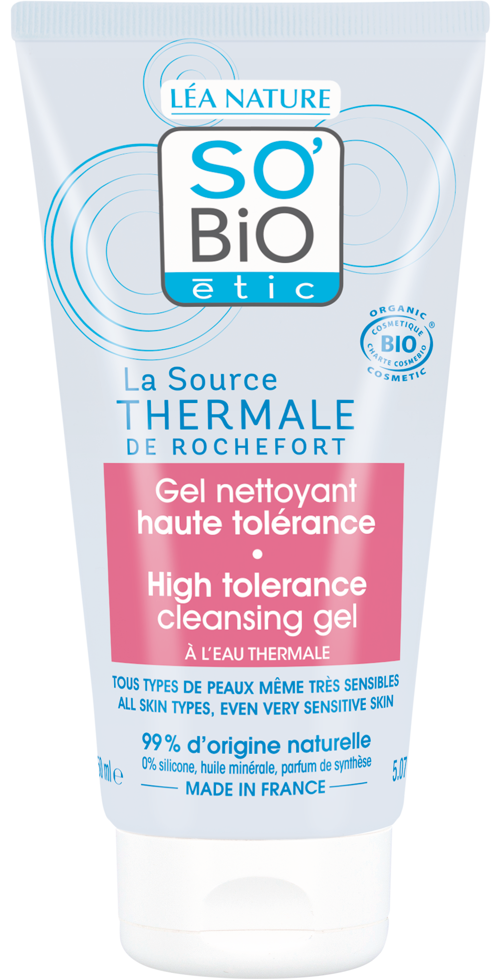Acest gel de curățare fără sulfați și săpun este foarte compatibil cu pielea și curăță tipurile de piele sensibilă fără a le usca. A fost special formulat pentru tipurile de piele sensibilă și oferă o senzație plăcută la nivelul pielii. Formula sa conține apă termală Rochefort, cunoscută pentru proprietățile sale prietenoase cu pielea.