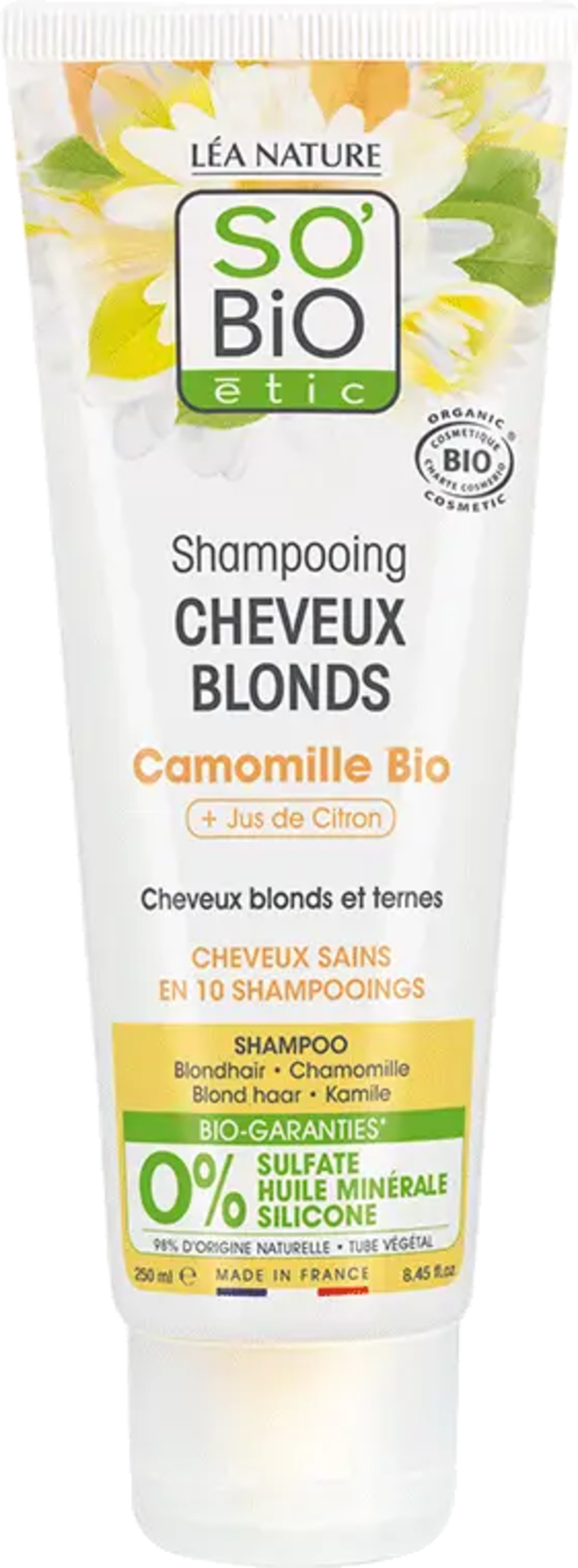 Acest șampon a fost dezvoltat pentru a oferi părului natural blond sau vopsit, precum și celui lipsit de strălucire, o nouă intensitate, în timp ce este curățat delicat. Formula sa conține mușețel bio și suc de lămâie, care, în sinergie, asigură strălucire și suplețe.