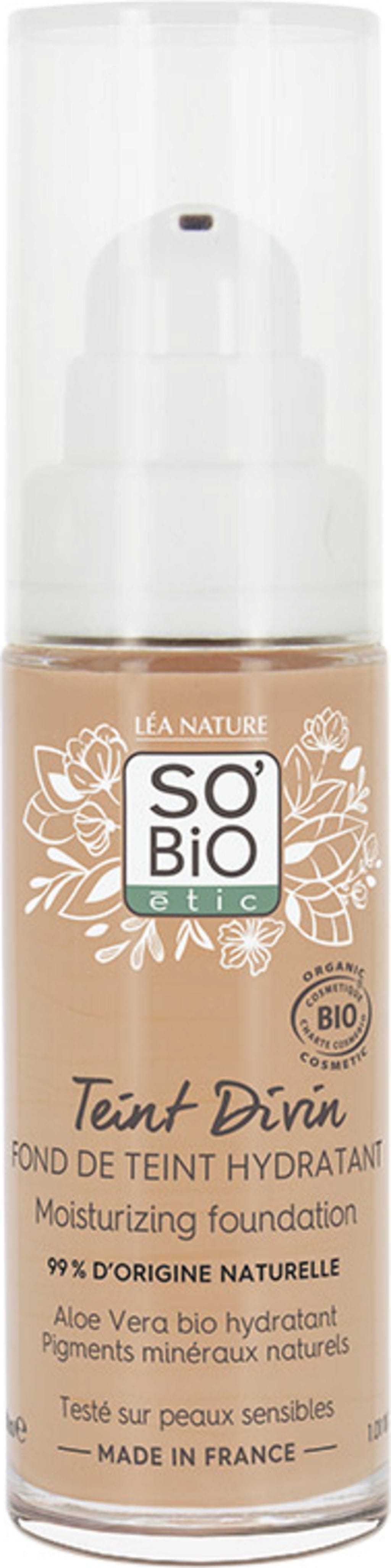 Datorită texturii sale ușoare și plăcute, acest fond de ten se îmbină cu pielea, conferindu-i un aspect luminos și asigurând un finisaj mat natural. Formula sa este îmbogățită cu Aloe Vera bio și acid hialuronic, cunoscute pentru proprietățile lor hidratante care susțin hidratarea de durată a pielii. Aloe Vera, în plus, îngrijește pielea fiind bogată în zaharuri, vitamine, minerale și aminoacizi esențiali. Datorită formulei sale, fondul de ten este extrem de ușor, nu lasă senzația de grăsime și permite pielii să respire, în timp ce camuflează ridurile și liniile fine.