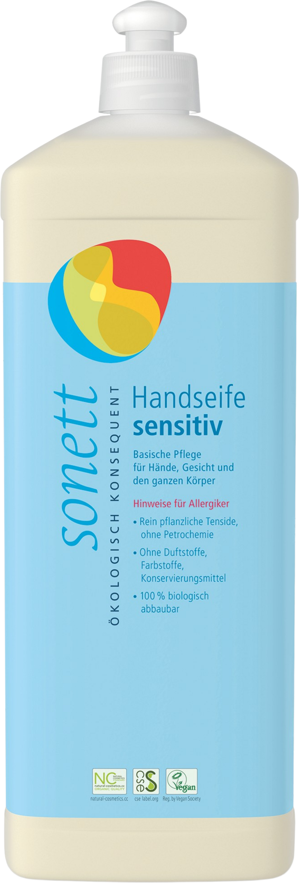 Săpunul delicat pentru mâini de la Sonett este realizat din uleiuri 100% bio. Uleiul de cocos bio provine din comerț echitabil din Republica Dominicană, iar uleiul de măsline bio este obținut de la cooperative din Grecia, Italia și Spania. Săpunul este deosebit de blând cu pielea și complet lipsit de parfumuri, fiind astfel ideal pentru persoanele alergice și tipurile de piele sensibilă.