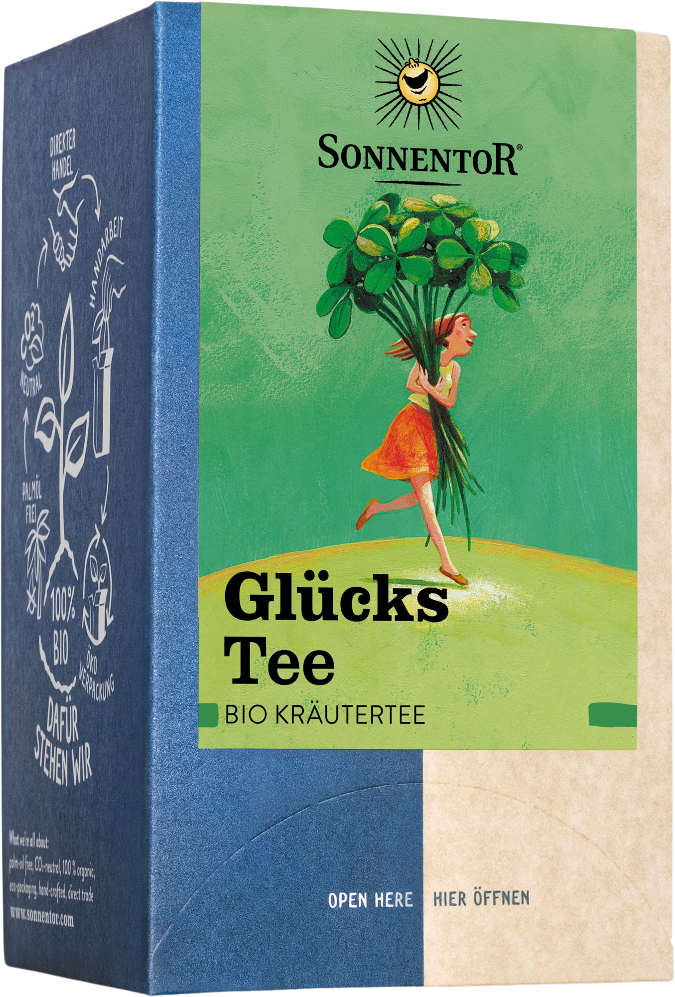 Această amestec de ceai de plante ne oferă o mică parte din fericire și ne atenționează că unele lucruri mici nu sunt de la sine înțelese. Ceaiul de fericire este un amestec puternic, un ceai de mic dejun popular și un cadou delicios pentru cei mai mult sau mai puțin fericiți.