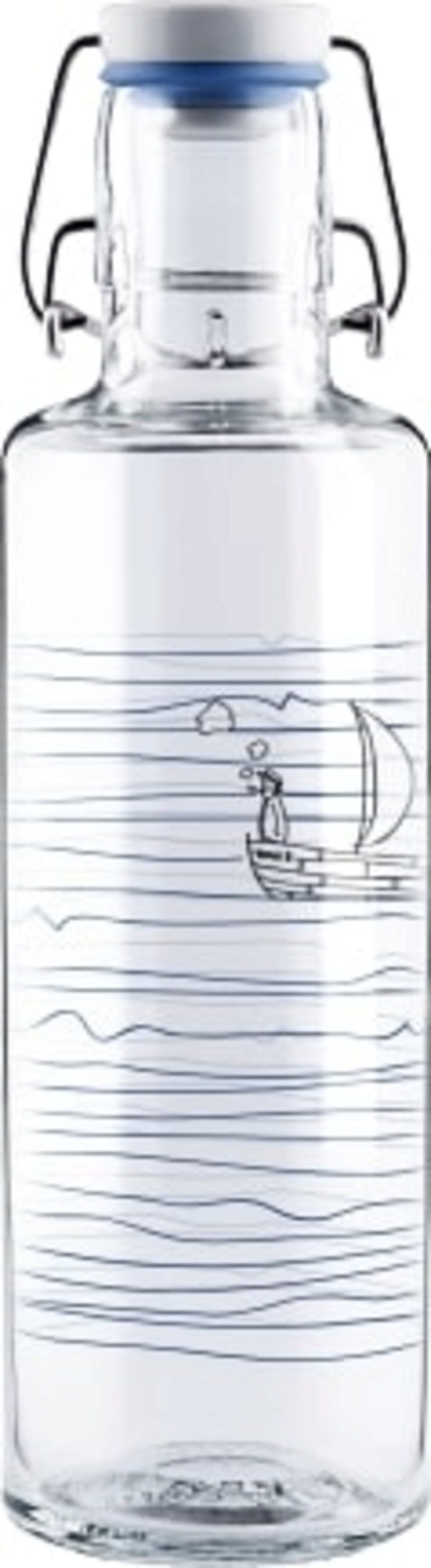 Această sticlă de apă este realizată din oțel inoxidabil, sticlă, porțelan și cauciuc natural. Imprimeul încântă inimile iubitorilor de apă. Perfectă pentru pauzele de hidratare.