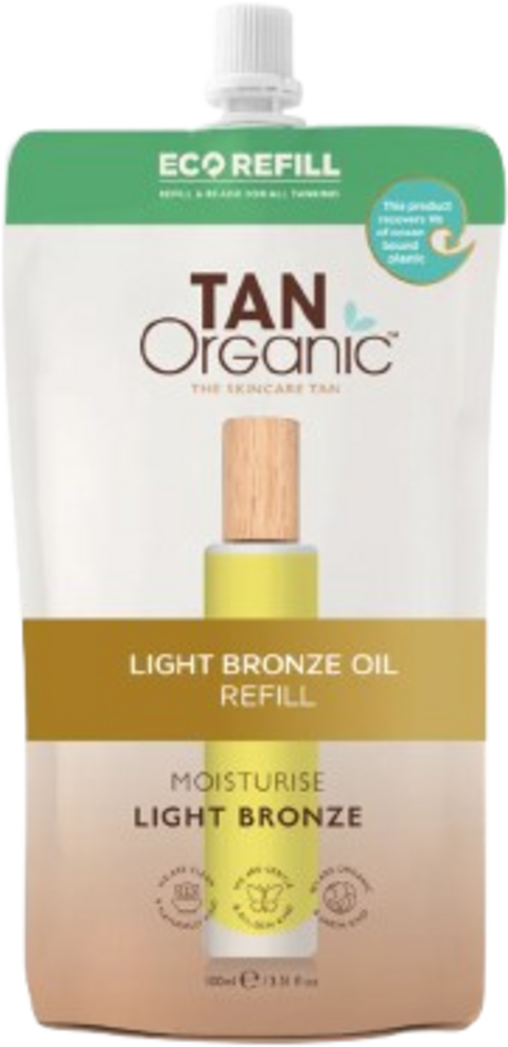 Fiecare plic de rezervă Tan Organic conține două sticle pline cu uleiul autobronzant preferat. Revoluționarul ulei autobronzant este un ulei ușor, non-gras, care se absoarbe rapid în piele, oferă hidratare intensă și dezvoltă o strălucire aurie naturală în 6-8 ore, care durează până la 7 zile. Formula, cu aloe vera organică, ulei de argan, ulei de semințe de borago și ulei de portocală dulce, lasă pielea catifelată, îi conferă o strălucire irezistibilă și asigură un finisaj uniform, fără urme. Datorită sistemului de reumplere, puteți reumple cu ușurință sticla de sticlă și puteți reduce deșeurile de plastic. Acest lucru va face bronzul tău nu doar mai frumos, ci și mai durabil.