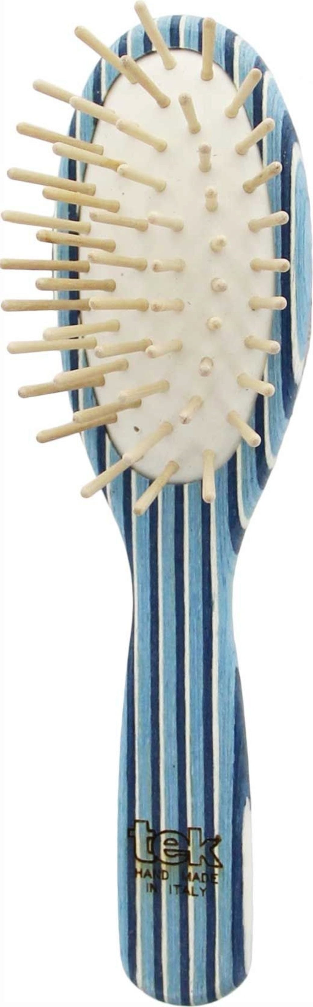 Această perie mică și ovală are peri scurți, potriviți pentru toate tipurile de păr. Este fabricată din lemn de frasin, tratat cu ulei de in și ceară de carnauba. Perii sunt realizați din lemn de carpen și sunt fixați într-un tampon de aer din cauciuc natural, care asigură o pieptănare optimă și plăcută a părului, fără a-l electriza.