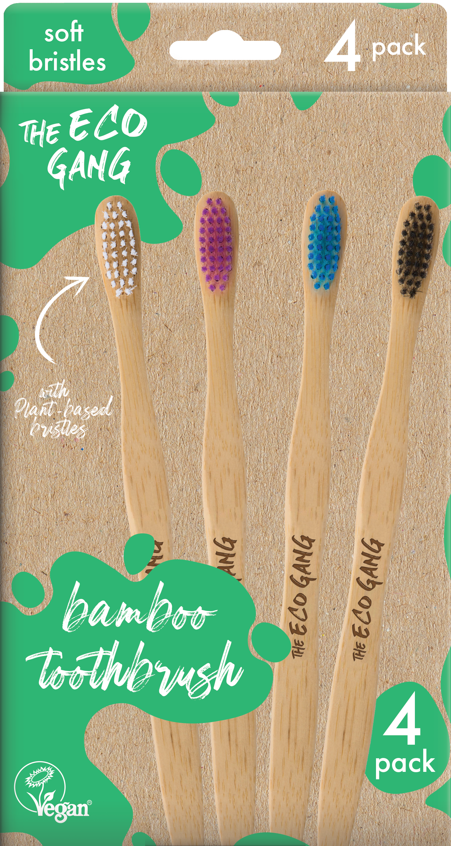 The Eco Gang Adult Bamboo Toothbrush 4 Pack, 4 bucăți