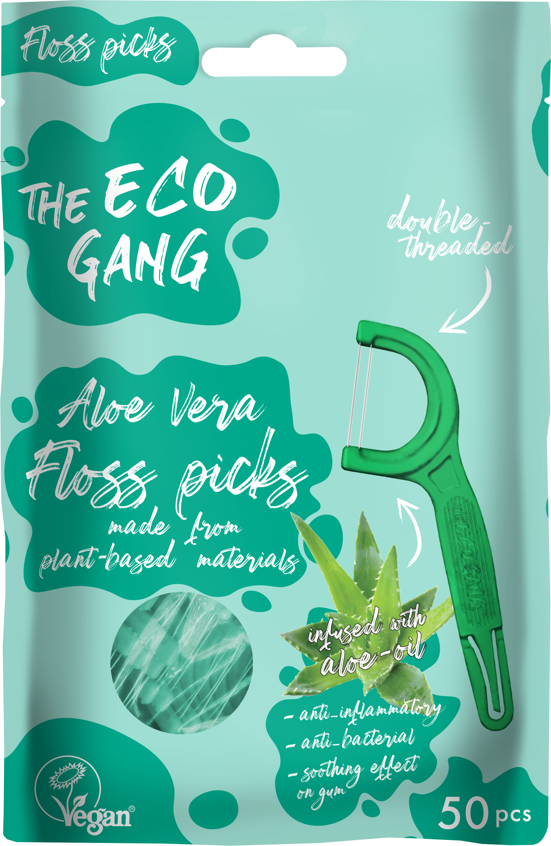 The Eco Gang Floss Picks, Aloe Vera (50 bucăți)