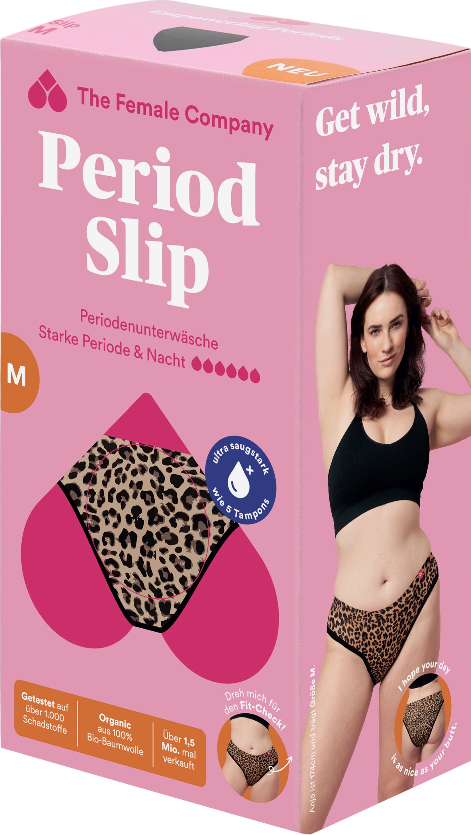 Chiloții menstruali cu imprimeu leopard sunt extrem de absorbanti și se usucă rapid - ceea ce îi face partenerul perfect în zilele cu flux abundent. Datorită procesării inovatoare Fluid Protection®, oferă, de asemenea, o protecție eficientă împotriva scurgerilor și au o grosime de doar 1 mm mai mult decât un chilot obișnuit.