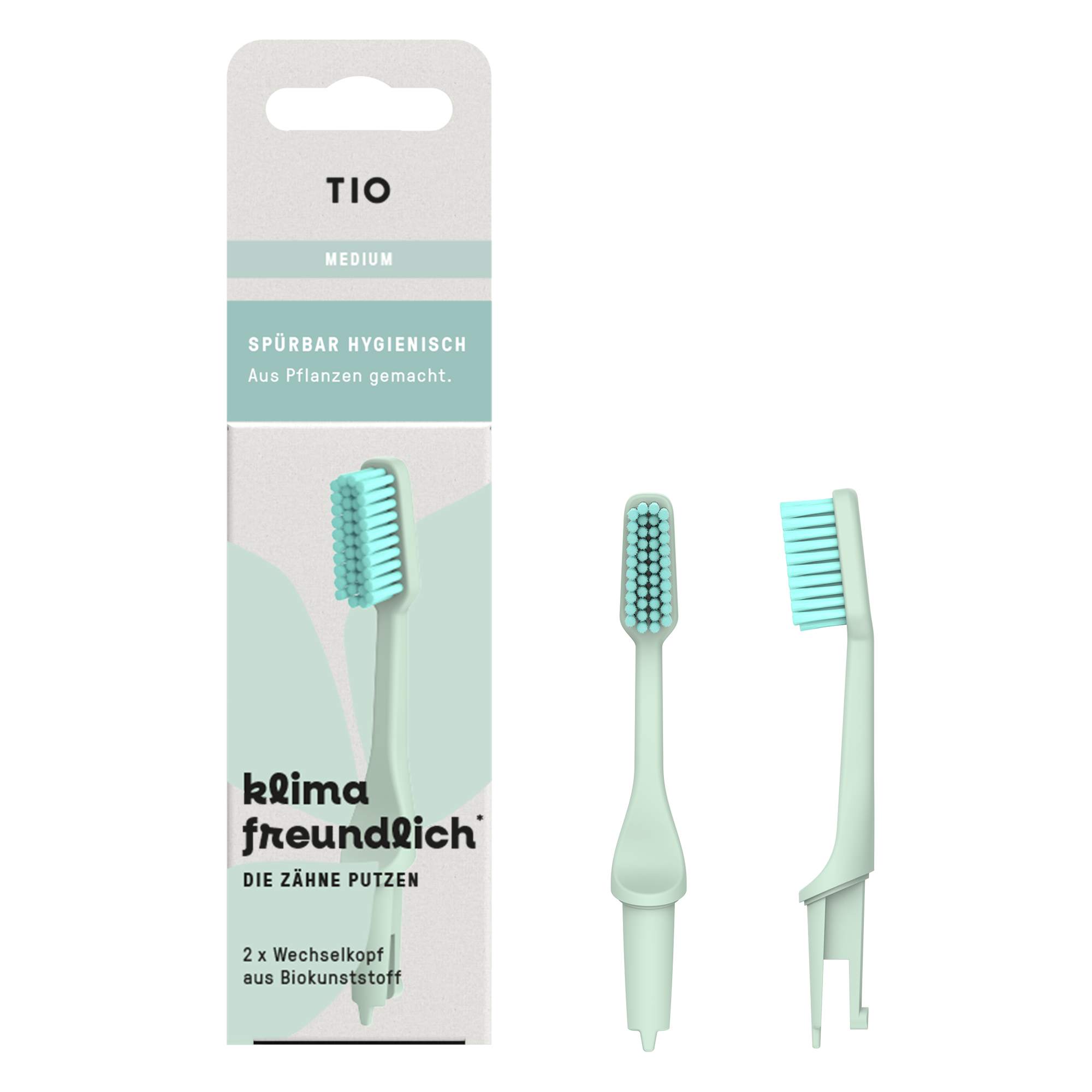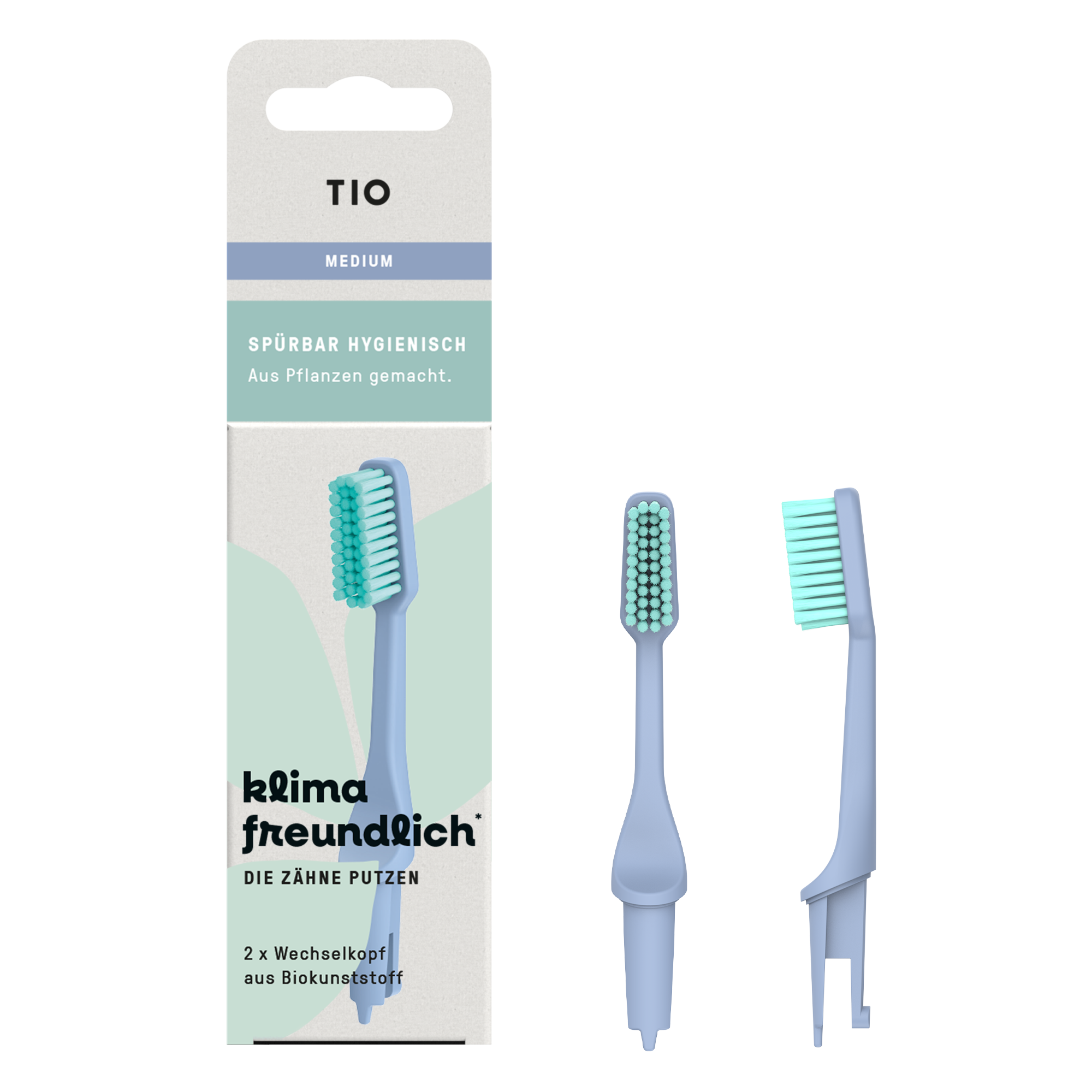 Capetele de periuță de dinți prietenoase cu mediul de la TIO fac spălatul pe dinți sustenabil și ecologic. Rezervele ușor înclinate au peri moi din nailon 10.10, obținut din ulei de ricin, care asigură o curățare temeinică. Capetele uzate pot fi aruncate simplu în gunoiul menajer.