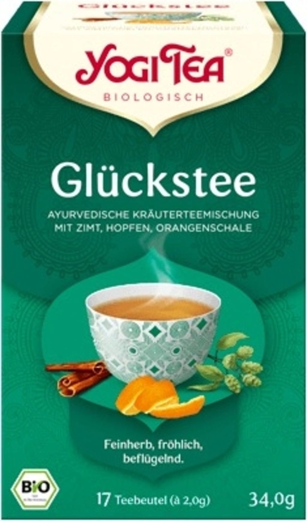 Ceaiul pentru Fericire este bazat pe tradiția Ayurveda și combină aromele de scorțișoară, hamei și coji de portocală. Parfumul și gustul său senzual ne fac să ne oprim un moment și să ne alină sufletul. Ceaiul pentru Fericire este un ceai al bunei dispoziții. Gustul său inspiră și ne arată minunata soare caldă din spatele norilor.