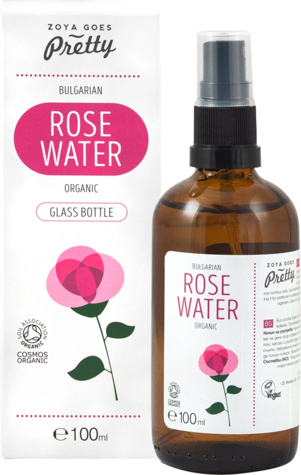 Zoya goes pretty Organic Bulgarian Rose Water Glass Bottle, 100 ml
